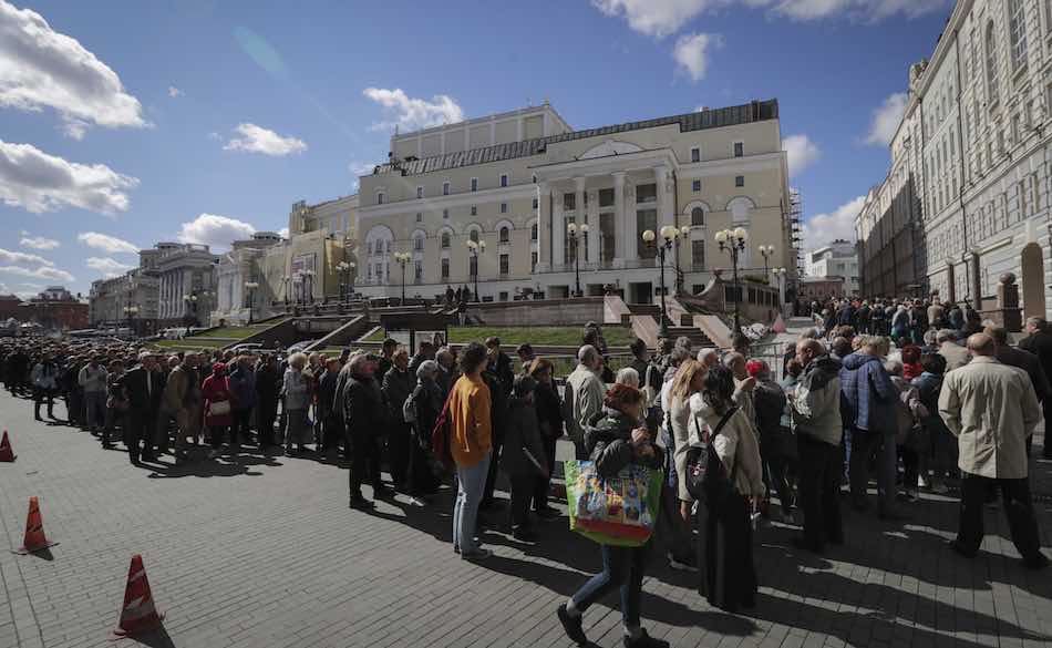 واصطف مئات الأشخاص خارج المبنى لإلقاء نظرة أخيرة على غورباتشوف، الذي رقد جسده في تابوت مفتوح يحيط به جنديان مع العديد من الورود وباقات الزهور.