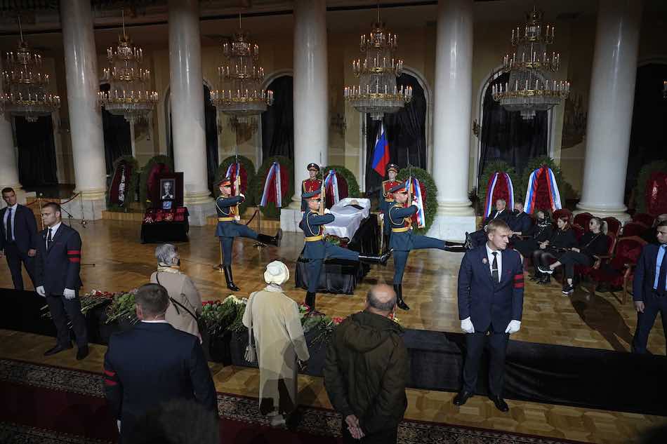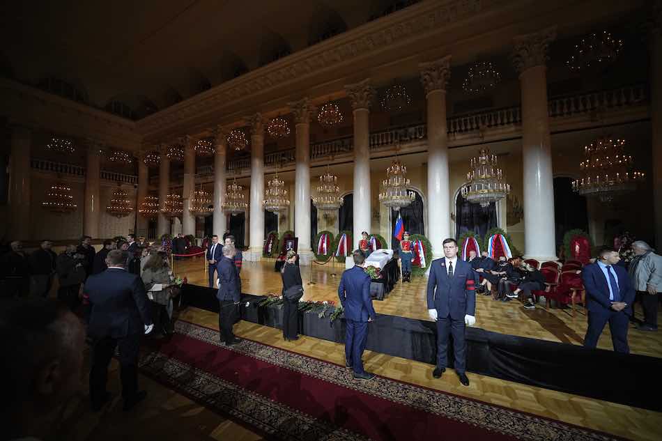 بدأ الحدث في قاعة الأعمدة في موسكو، وهو مكان متعدد الطوابق استضاف الجنازات الرسمية لزعماء الاتحاد السوفيتي السابقين، مثل جوزيف ستالين وفلاديمير لينين.