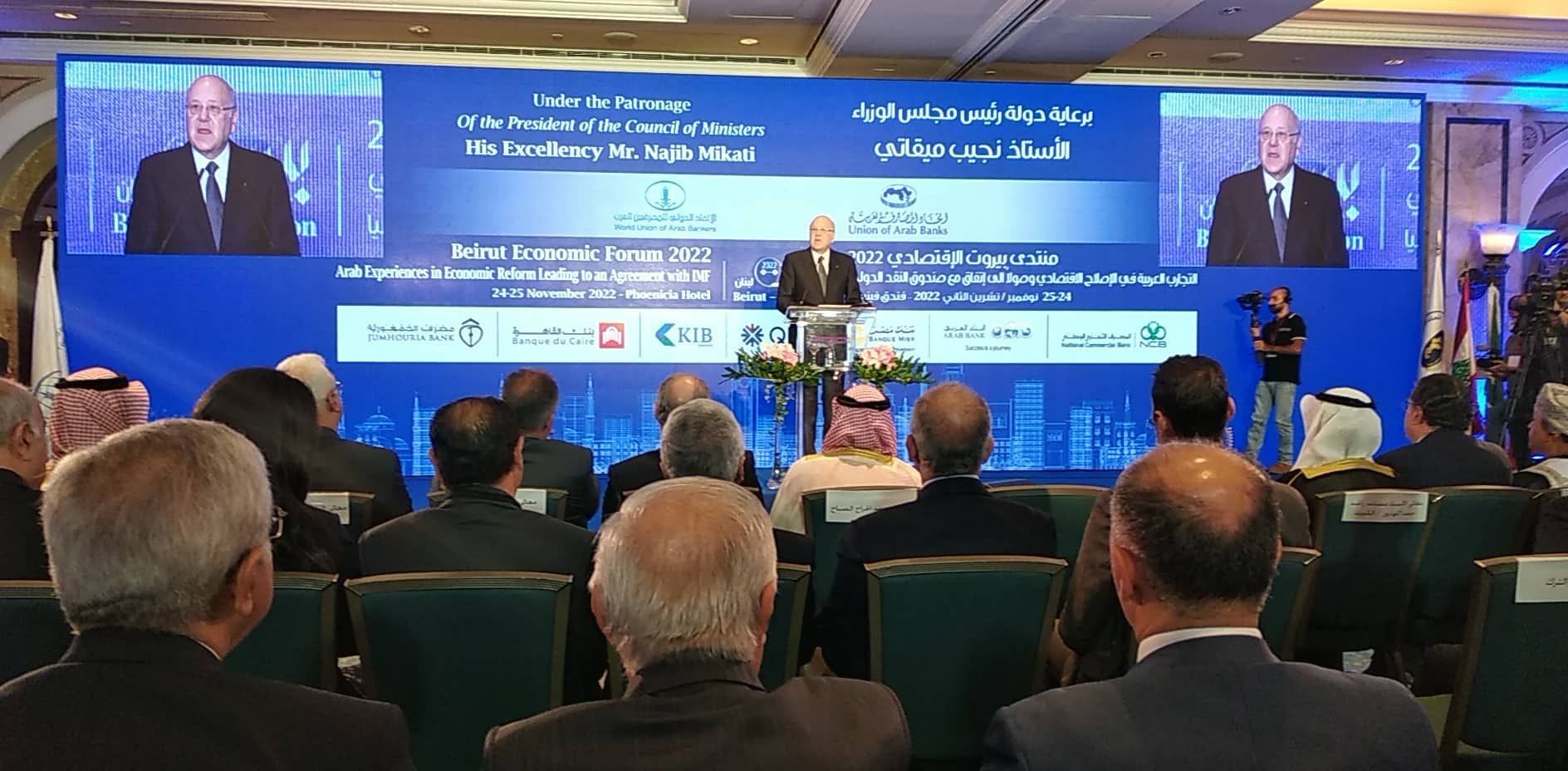 وقال ميقاتي، خلال كلمة أمام المنتدى الاقتصادي العربي في بيروت: "رغم الضغوطات الماكرو-اقتصادية المستمرة والاختلالات المالية المتواصلة في ظل تشنج سياسي متعاظم، عاد الاقتصاد ليسجل هذا العام نمواً يقارب اثنين في المئة بالقيم الفعلية، بعد الانكماش الصافي الملحوظ الذي شهده منذ بداية الأزمة" في عام 2019.