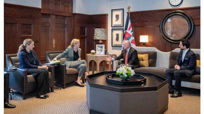 جاء ذلك خلال استقبال الملك عبدالله الثاني في قصر الحسينية، اليوم الثلاثاء، مديرة الوكالة الأمريكية للتنمية الدولية سامانثا باور، بحضور ولي العهد الأمير الحسين بن عبدالله الثاني ومدير مكتب الملك، الدكتور جعفر حسان، ووزيرة التخطيط والتعاون الدولي زينة طوقان، وفق وكالة الأنباء الأردنية "بترا".
