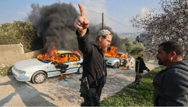 تفاقم التوتر.. مستوطنون يحرقون مركبات فلسطينية ويخطون شعارات عنصرية شرق رام الله