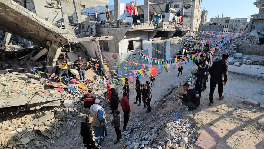 قطاع غزة، الذي يعيش تحت الحصار منذ أكثر من عقدين، تعرض خلال عامي 2023 و2024 لحرب إبادة جماعية خلفت دماراً واسعاً في البنية التحتية وأودت بحياة عشرات الآلاف من المدنيين، وتركزت الجهود الإنسانية الدولية على توفير الغذاء والماء والكهرباء والخدمات الطبية، لكن القيود المستمرة على دخول المساعدات وقطع الكهرباء من قبل إسرائيل أدت إلى معاناة شديدة للسكان، ويعيش غالبية الفلسطينيين في خيام ومساكن مؤقتة، في ظل نقص الغذاء والوقود والأدوية، ما يجعل أي مناسبة احتفالية، مثل رمضان، حدثاً استثنائياً يعكس صمود المجتمع الفلسطيني وتمسكه بالحياة والكرامة، وتُظهر هذه التجربة قدرة المجتمع على خلق لحظات أمل وسط ظروف مأساوية، وتؤكد أهمية الدعم الدولي لتخفيف المعاناة وتعزيز الاستقرار الإنساني في القطاع.