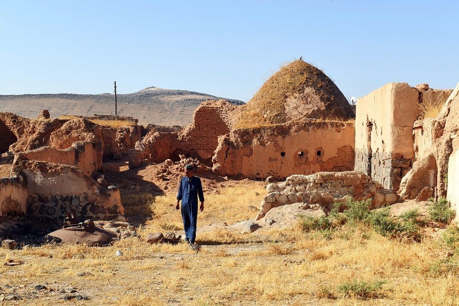 بعد معارك دفعته إلى النزوح في 2013، عاد محمود المحيلج (50 عاماً) في عام 2021 إلى قريته أم عامودا الكبيرة في ريف حلب الشرقي ليجد بيوتها الطينية التي تعود هندستها المعمارية إلى آلاف السنين، غير قابلة للسكن.