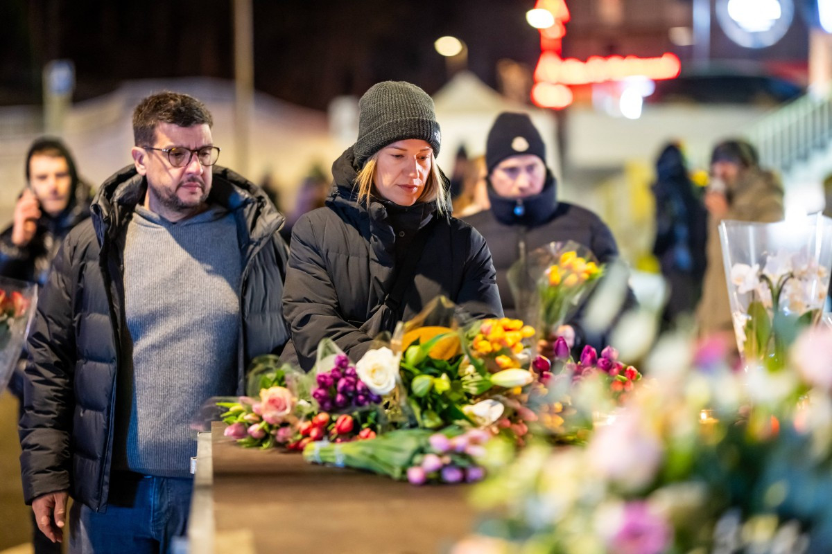 مع امتلاء الطاولات المؤقتة بالزهور والشموع، بدأ الناس بوضع الشموع مباشرة على الأرض المتجمدة. وقالت إحدى النساء، مفضّلة عدم ذكر اسمها: «لدينا شخص قريب لا يزال مفقودًا… لا نملك أي أخبار عنه حتى الآن».